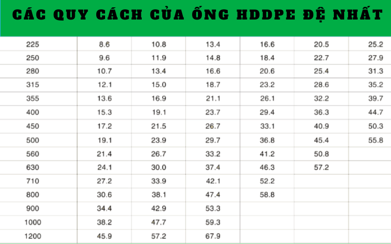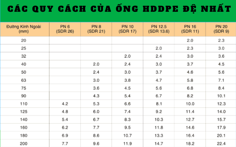 CÁC QUY CÁCH ỐNG HDPE PHI 63 ĐỆ NHẤT